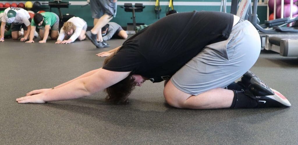 - Stretch major muscle groups (hamstrings, shoulders, back).